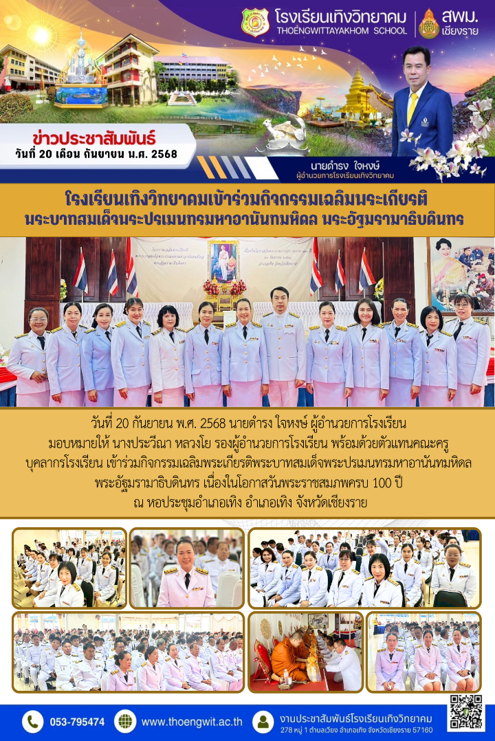 โรงเรียนเทิงวิทยาคมเข้าร่วมกิจกรรมเฉลิมพระเกียรติ พระบาทสมเด็จพระปรเมนทรมหาอานันทมหิดล พระอัฐมรามาธิบดินทร นางสาวจิราวรรณ เรือนสิทธิ์ 20 กันยายน 2568 กลุ่มบริหารงานกิจการนักเรียน เข้าชม : 153