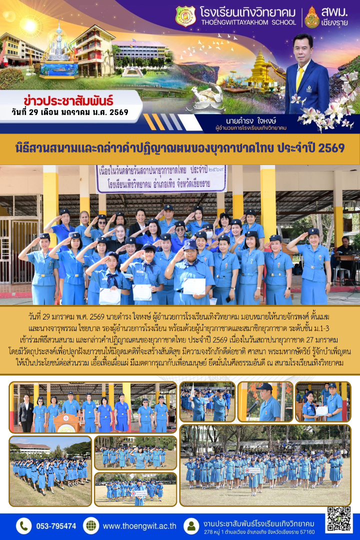พิธีสวนสนามและกล่าวคำปฏิญาณตนของยุวกาชาดไทย ประจำปี 2569 นางสาวจิราวรรณ เรือนสิทธิ์ 29 มกราคม 2569 กลุ่มบริหารงานทั่วไป เข้าชม : 69