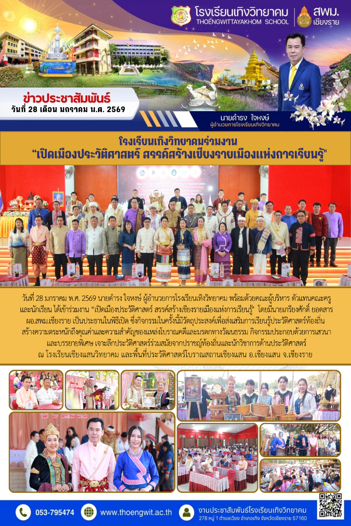 โรงเรียนเทิงวิทยาคมร่วมงาน “เปิดเมืองประวัติศาสตร์ สรรค์สร้างเชียงรายเมืองแห่งการเรียนรู้" นางสาวจิราวรรณ เรือนสิทธิ์ 29 มกราคม 2569 กลุ่มบริหารงานวิชาการ เข้าชม : 52